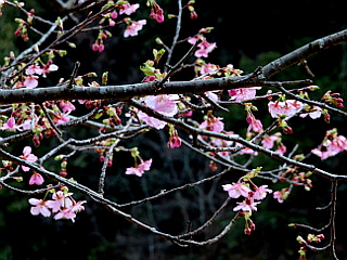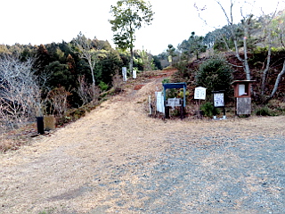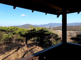 | 比丘尼駐車場 | 河津桜が咲き始めていた | 東屋から見る吉祥山、本宮山 |