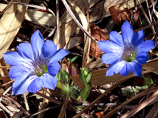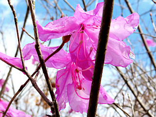 | 山行記 | ●春の花が咲き始めた地元の里山だが、今年は春の花の開花が早いようで、山へ行くことのできる日は、毎回どこへ行こうか迷う。昨年までの自分のHPやネットの記事を頼りに行き先を決めるのだが、休みで雨の降らない日も限られている。 ●この日は、シュンランを観たくて、一月ぶりに比丘尼を訪れることにした。平日ということもあり、駐車場には一台の車も停まっていなかったが、世界の桜の園は、これから咲くソメイヨシノ以外のサクラが咲いていていい感じだ。 ●早速歩き始めるが、良く草が刈られた跡では、丈が伸びきらなかったショウジョウバカマやフイリフモトスミレなどの背の低い花がよく咲いていた。 ●東屋から比丘尼城址方面への道沿いではハルリンドウが咲き始めていた。それでも、時間が早いのでまだ良く開いているものは少なく、目立たないがよく見ると蕾も多い。道は前日の雨で足下が滑りやすいので注意が必要だ。 ●比丘尼城址から愛の鐘を経て、おすすめの小径から外れて金山へ向かう。樹林帯に入る手前の道は雨水が流れ、歩くのが大変だった。樹林帯から林道を横切り、急な道をジグザグに登り切ると金山山頂に着く。 ●金山山頂で少し過ごした後、県境稜線を進むが、ヤブツバキの花がよく咲き、ヤマウグイスカグラやサルトリイバラ、クロモジなども咲き始めていた。裸地ではハルリンドウがいたる所で咲き、遠目に見ても薄紫の花を確認することができた。 ●展望ピーク周辺ではハルリンドウに加えスミレの仲間がいたる所で咲き、クサボケやサルトリイバラ、ミツバツチグリなどが咲いていた。展望ピークから一旦下り、登り返せば雨生山山頂だ。 ●雨生山山頂はよく草が刈られ広々としており、浜名湖や遠州灘、東名高速道路の三ヶ日ジャンクションなどがよく見えたが、富士山や南アルプスなどは雲が多くて観ることはできなかった。 ●雨生山山頂で少し休憩した後展望ピークまで戻り、雨生山反射板経由で新城方面の林道へ下るが、その間はハルリンドウがいたる所で咲き、雨後で道が水路状態なのでそれを避けるために誤って踏んでしまわないように慎重に下った。 ●以降はしばらく林道を下るが、ヤマザクラやキブシ、サルトリイバラ、ミツバアケビ、足下にはハルリンドウやスミレの仲間などがよく咲いており、雨後なので、サワガニが側溝や林道にまで出て歩いていた。 ●林道からおすすめの小径ヘ繋ぐ道は、これまでササ刈られていなかった区間も、ようやく刈られて歩きやすくなっていた。おすすめの小径と合流すると、裸地を経て滑りやすい急坂を下る。 ●雨後でさらに滑りやすくなった道を慎重に下っていくと、以前から出来ていたバイパスの合流点から、土を盛った歩きやすい道が新たに造られていた。 ●結局、シュンランは少し早かったようだったが咲いているものもいくつか観ることができた。それでも、4月並みのぽかぽか陽気の中、みるみる開いてきているようなので、後数日で咲き揃いそうな感じだった。 |