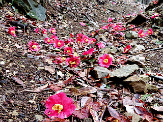 | 比丘尼城址 | 林道出合 | ヤブツバキの落花 |