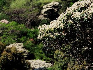| 山行記 | ●昨年計画していたが失念していて時期を逃してしまったトキワマンサク自生地から神石山へ登る計画だったが、今年は春の花の開花が早いようだ。なので、例年4月中旬に満開になるトキワマンサク自生地だが、それよりも少し早く訪れてみることにした。 ●7時半前にトキワマンサク見学者用駐車場に着いたものの、日曜日だというのにまだ一台の車も停まっておらず、やはり少し早かったのかと思ったが、とりあえず駐車場からは観ることができないトキワマンサク自生地まで行ってみることにした。 ●この日は少し風があるものの朝から青空が広がり、嵩山などの山肌には新緑の中にクロバイの純白の花がいいアクセントになっていて美しく、道端ではカラスノエンドウやノゲシ、オオイヌノフグリなどの定番の花が咲き競っていた。 ●少し歩くと、前方に薄い黄色の花が見えてきたので、とりあえずトキワマンサクは咲いているようだ。トキワマンサク自生地に着くと、ほぼ満開のトキワマンサクが青空を背景によく映えていた。 ●まだ早朝で日陰が多いので、日がよく回る帰りにまた寄ることとして、そのまま嵩山方面へ向かう。「神座古墳群」の案内に従って川沿いの道から橋を渡り、広い未舗装の道を緩やかに登っていく。 ●途中で舗装道を横切り、大きな給水施設の横を抜けると、程無く神座古墳群に着く。クロバイの白い花を見ながらさらに登っていくと東雲寺からの道と合流し、そのすぐ先に嵩山登り口の案内があるので、それに従って急な坂を登り切ると嵩山山頂だ。 ●嵩山山頂からは浜名湖などを観ることができるが、木々が邪魔で思っていたよりも展望は良くない。山頂には地元の児童生徒が造ったと思われる、古墳に因んだ埴輪のような素焼きの人形が並べられており、それらはその先まで続いていた。 ●嵩山から少し下り、次のピークを迂回すると梅田峠に着く。梅田峠で梅田親水公園からの道と合流し、しばらく緩やかな道を進むと、登る道と迂回する道に岐れるが、登る道を行くと、案内は無いが岩場の展望地に着くのでそれが仏岩なのだろう。 ●仏岩から少し下り、迂回道と合流し緩やかな道を進み、少し登ると送電線鉄塔に着くが、そこがラクダ岩分岐だ。ラクダ岩は帰りに寄ることにして先へ進む。 ●ラクダ岩分岐から平坦な道を歩いた後、少し登るとまた送電線鉄塔が現れるが、そこからは一登りで神石山山頂に着く。日曜日ということもあり、山頂では多くの人達が休憩をしていた。 ●この日も春らしく遠くは霞んでいて富士山などを観ることはできなかった。少し過ごした後下山を始める。下山は来た道を戻るが、往きに後回しにしたラクダ岩へ寄っていくことにした。それでも、ラクダ岩は展望など期待した程ではなかった。 ●帰路、仏岩や嵩山など迂回路のあるものは全て迂回路を選んで下り、再び訪れたトキワマンサク自生地は、朝と比べよく光も回り見事で、多くの見物客が入れ替わり訪れていた。駐車場も朝の状態とは打って変わって満車で駐車待ちが出る程だった。 |