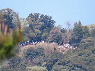| 嵩山の山肌の新緑とクロバイのアクセント | 嵩山登り口 | 嵩山山頂 |