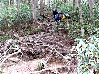 | 急なうえに木の根が覆う登山道 | 横岳山頂 | ソウシチョウ |
