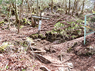 | コンクリート製の擬木の急な階段が続く | 秋畑稲含神社、山頂・稲含神社分岐 | 稲含神社 |