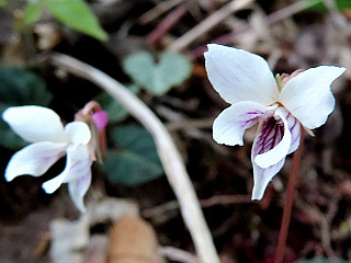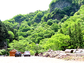 | 新緑が眩しい鹿岳登山口駐車場 | フイリフモトスミレ | ニガイチゴ |