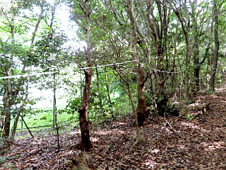 | 金山山頂に張られた謎の白いテープ | 展望ピークから見る雨生山、吉祥山、本宮山 | 雨生山山頂 |