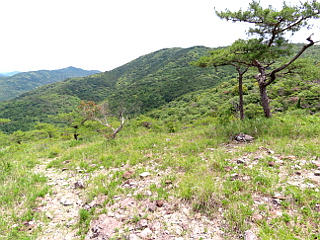 | 正月のシライトソウが咲きササユリも咲き始めた春から夏へと変わりつつある比丘尼と県境稜線 | ||