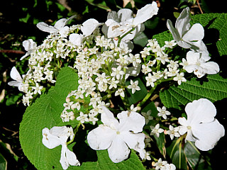 | 山行記 | ●梅雨前線が南の海上にあり、前日から降り続く雨がなかなか上らない、しかし、北の方は天気が良さそうなのと、行く予定だった甘利山のレンゲツツジがまだのようなので、急遽この山へ行くことにした。 ●豊川では朝になっても雨が落ちていたが、岐阜県北部は晴れるという予報なので出発する。登山口の天生峠はただでも遠いのだが、そこへ向かう白川郷からの道が通行止なので、飛騨川合から行かざるを得ず、さらに遠いものとなっていた。 ●豊川から4時間以上かけて天生峠へ向かうが、行く道々のタニウツギの上品なピンク色の花がいい感じだ。その外にも、トチやホウ、キリなどの花がよく咲いていた。 ●天生峠の広い駐車場に着くと、早速支度をして靴の洗浄をした後、環境整備協力金を納めて自然公園内に入る。広い道をジグザグして登っていくと途中から木の階段の急坂に代わり、獣除けの電気柵の出入り口を開け閉めして進むと天生湿原に着く。 ●駐車場からこの間にも、エンレイソウやツクバネソウ、ミツバオウレン、、スノキ、まだ先始めだがユキザサやマイヅルソウなどの花が咲き、花好きのメンバーは、のっけからこれまで見たことが無い程ハイテンションだ。 ●一方通行の天生湿原を進むと、まだ少し残っているミズバショウやザゼンソウ、リュウキンカ、タテヤマリンドウ、ニリンソウ、ミツバオウレン、チゴユリ、クロウスゴ、咲き始めたコバイケイソウなど、さすがは花の宝庫だ。 ●天生湿原の縁を回った後さらに進み、カラ谷分岐から、2ルートある中のカラ谷登山道を進む。花はツバメオモトやサンカヨウ、ラショウモンカズラ、タケシマランなどさらにその種類を増し、沢沿いではチャルメルソウなども観ることができた。 ●カラ谷分岐から少し行くと、道はさらにカラ谷登山道とブナ探勝路に分岐するので、まずはカラ谷登山道を進む。緩やかな沢沿いの道を沢を渡り返しながら進んでいくと、見事なカツラの大木が目立つカツラ門に着く。 ●道沿いには、サンカヨウやまだ葉が出たばかりのヤグルマソウが目立つが、外の花も負けてはいない。新たにキヌガサソウやズダヤクシュ、終わりかけだがショウジョウバカマなども観ることができた。 ●やがて、木平分岐に着くが、そこから籾糠山山頂方面へこの日一番の急登が始まる。ここへ来てなかなか大変だが、ポツンポツンと咲くムラサキヤシオの花が応援してくれているようだ。 ●急登が落ち着くと籾糠分岐に出るが、ここまで来れば籾糠山山頂まではあと少しだ。短い急登を2度程こなすと、周囲も開けてきて、やがて籾糠山山頂に到着する。籾糠山山頂は狭いが展望は良く、この日は霞んでいて観ることができなかったが、空気が澄んでいれば、北アルプスを隅々まで見渡すことができるとのことだ。 ●それでも、薄っすらではあるが、乗鞍岳と御岳は確認することができた。山頂で休憩をしていると、ここのスタッフの方がみえて、色々なことを教えて頂いたのだが、その方の奥さんが豊川の方だということで、話はさらに盛り上がった。 ●平日で、他の登山者も少なかったので、山頂でしばらく過ごしてから下山にかかる。下山は、一旦籾糠分岐まで戻り、ブナ探勝路を下ることにした。その名のとおり立派なブナが多く、急な下りが続くが気持ちは癒される。 ●天生湿原まで戻ると、往きにもお会いした女性のスタッフの方と再びお会いして、これから咲く花のことなど色々な情報を頂いた。そしてその間に先に行ったメンバーを追いかけて、来た道を戻ったが、また時季を替えて訪れてみたいいい山だった。 |