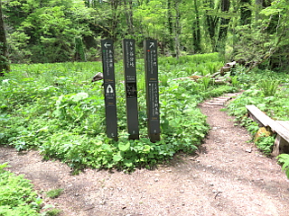 | カラ谷登山道、ブナ探勝路分岐 | 巨大なカツラの木が並ぶカツラ門 | 木平分岐 |