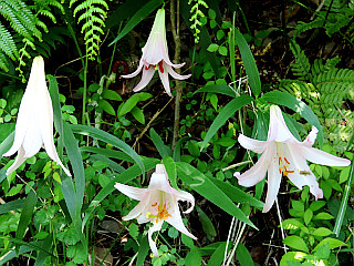 | 山行記 | ●前々日は線状降水帯が出現するなどの大雨で、豊川でも一部地域で大きな災害となった。それでも、前日は良く晴れ、この日も広く晴れるということなので、地元の山へ行ってみることにした。 ●行く道々も大雨の爪痕が見られ、山は大丈夫なのかと心配になる。各所で雨水に洗われた道路に土砂が流れた跡が残る中、五葉湖駐車場に車を停めると早速歩き始める。 ●まずは五葉湖の堰堤を歩くのだが、五葉湖は水位も増しており、水も濁って水面には落葉や落枝などが岸に流れ着いていた。増水した五葉湖からは、オーバーフローした水が放出されていた。 ●この日は朝からよく晴れ、日差しが痛い程降り注いでおり、日向はとても暑い。湖畔道路沿いでは、白いクマノミズキの花やビワの橙色の実が良く目立っている。 ●野鳥の森入口からコンクリート舗装の細い道を登り始めるが、日陰になる道は、涼しい風がよく通りいい感じだ。道沿いのウメの木の実がいい具合に熟していた。 ●コンクリート舗装の道からレンゲツツジの小径を抜け、作業道に出るとそれをしばらく歩く。緑も濃くなり、薄暗い道沿いにはこの時期これといった花は無いが、テイカカズラやムラサキシキブなどの花が咲き始めていた。 ●作業道の終点からは遊歩道の山道を進み、赤い実の小径を分けると、五葉山への急な登りになる。大雨の後なので泥々になっているかと心配したが、昨日から晴れていたので、それ程のことも無く五葉山山頂まで登ることができた。 ●前回来た時に、五葉山山頂の送電線鉄塔の周囲の木々が刈り払われ、明るくすっきりしていたのに驚いたが、この日も天気が良く、本宮山や三河湾、三河の山々を見渡すことができた。 ●五葉山からは小さなアップダウンを繰り返して市境稜線を進む。途中、五葉城址への分岐を見送りさらに進むと高城砦址への急坂が現れる。既に花は終わっているがショウジョウバカマの葉が目立つ急坂を一登りすると高城砦址に着く。 ●今の大河ドラマにも縁のある高城砦址からそのまま小さな登りを繰り返しながら市境稜線進むと、展望地を経て平尾山山頂に到着する。平尾山山頂は特に変わりは無く、以降は県境稜線を下っていく。 ●途中の伐採地からは、残念ながら雲が多くて富士山を観ることはできなかった。送電線鉄塔に着くと鉄塔巡視路を辿り作業道へ下るが、最後の箇所は、ロープが張られ、それを頼らなければ、下ることができない程難しくなっていた。 ●作業道出合からはその作業道を進むが、花はそれほど多くは無く、ウツギやヤブムラサキ、コアジサイなどが観られるだけだった。林道に出ると、所々にササユリが咲いていて、蕾も多いことからまだまだ見頃は続きそうだ。 ●平尾山、五葉山への分岐を過ぎると五葉城址への入口に出るので、そこから緩やかに登っていくと、樹木が広く刈り払われた五葉城址に着く。五葉城址からは、富士山は観ることができなかったが、薄っすらと南アルプスなどは観ることができた。 ●五葉城址ではササユリが各所で咲き、テリハノイバラやヤマボウシなども咲いていた。天気が良く日差しが強いので日の当たらないベンチで一休みした後、林道を下る。 ●林道沿いにもササユリが各所で咲き、ソクシンランやウツボグサ、ムラサキシキブなども見ることができた。林道も雨水が流れた後が目立ち、舗装道が始まる箇所の小滝では多くの土砂が流れ出した痕が痛々しかった。 |
