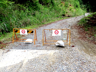 | 西側の林道入口 | 林道から観る鳳来寺山 | 林道から観る三ツ瀬明神山、宇連山など |