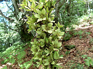 | 行程 | 鷹鳥屋登山口(8:49)・・・ABコース分岐(8:52)・・・カヤトの境(10:04-27)・・・風越の頭(10:45)・・・敬神コース分岐1(10:50)・・・敬神コース分岐2(11:05)・・・風越山(11:06-32)・・・敬神コース分岐2(11:33)・・・レンゲショウマ群生地(12:07-22)・・・敬神コース分岐2(13:07)・・・敬神コース分岐1(13:20)・・・風越の頭(13:24)・・・カヤトの境(13:40)・・・タツマワシ(14:07)・・・オオマキ(14:20)・・・牛首展望台(14:25)・・・ABコース分岐(14:44)・・・鷹鳥屋登山口(14:45) | |