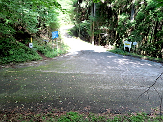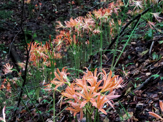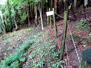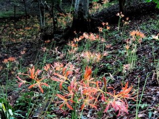 | オオキツネノカミソリ登山口 | 作業道からオオキツネノカミソリ群生地へ | 作業小屋付近から観るオオキツネノカミソリ |