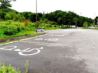 | ガランとした平日の治部坂高原駐車場 | 別荘地内の遊歩道入口の案内 | 蛇峠山登山口 |