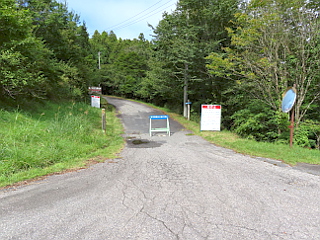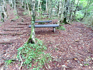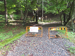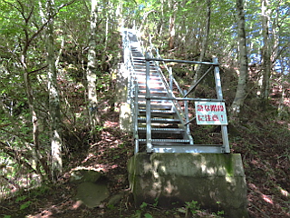| 面ノ木第三園地駐車場 | 面ノ木第三園地からの作業道は通行止め | 天狗棚展望台への急な階段 |