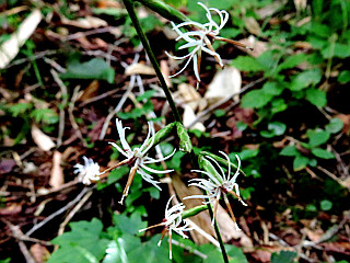 | 山行記 | ●週間予報では、微妙な感じだったこの日、それでも、曇り予報となったので、出掛けることにした。朝6時に集合場所に集合すると、空には二重の見事な虹を観ることができたのだが、虹が出るということは、天気はやはり微妙な感じだ。 ●登山口は道の駅平谷でもいいのだが、平日なのでもう少し先まで車で行ってみる。やはり駐車している車両は無かったので、そこに車を停めて支度をする。登山口付近は既にツリフネソウやツリガネニンジンなどの花がいっぱいでなかなか出発できない。 ●とりあえずそれらの花を一通りカメラに収めるとようやく出発だ。まずは沢沿いの林道を緩やかに登っていくが、そこでも、ツリフネソウやダイコンソウ、オトコエシなどいろいろな花が咲きペースは上がらない。 ●林道終点からは、傷んでいる上に濡れて滑りやすい不安定な木の橋を渡り山道に取り付く。意外に急な道はひたすら続き、その間で植林帯から自然林に代わる。樹林帯なので花は少ないが、ツルリンドウやヤマジノホトトギスなどを見ることができた。 ●やがて舗装道に出るが、登山道はこの先何度も舗装道を横切りながら続く。途中「高嶺のブーナス」と名付けられたブナの巨木をみてさらに進むと、オクモミジハグマやアキノキリンソウなどが観られるようになり、その先で二度目の舗装道に出る。 ●登山道の傾斜はしだいに緩くなり、三度目の舗装道出合を過ぎると、これまで葉しか見ることができなかったセンブリの花なども観ることができ、四度目の舗装道出合まで来ると、後はそれを歩いて管理棟のある広場へ進む。 ●広場からは、大川入山や恵那山、蛇峠山などの山々を観ることができる。長者峰山頂は、広場から一段上がったところにあり、三角点とガラス張りの休憩舎がある。 ●休憩舎で少し休憩をした後、高嶺へ向かう。高嶺へは平坦な未舗装の林道を歩いて行くが、道沿いにはハナイカリやアケボノソウ、ヤマハハコ、アキノキリンソウなど花がいっぱいだ。 ●途中ゲートがあり、一般車は通行できないようになっているが、下からワンボックス車が上ってきて、ゲートを開け進んできた。車はすぐ先で人を降ろし、向きを変えて戻ってきた。どうやら、パラグライダー教室の生徒を運んできたようだ。 ●メンバーはパラグライダーが飛ぶ時を観てみたかったが、準備に時間がかかりそうだったので、とりあえず高嶺へ向かうことにした。花を楽しみながらシカの足跡のある快適な道を歩いていくと、高嶺の登り口に着く。 ●高嶺はそこから急な斜面を直登する道と、回り込んで登っていく道があるのだが、往きは急登を登ることにした。直登する道は思ったよりも急で長く感じたが、それを登り切ると高嶺山頂だ。山頂からは茶臼山などの奥三河の山々を観ることができた。 ●そして、先程楽しみにしていたパラグライダーだが、既に飛んでしまったようで、奥三河の山々を背景に気持ち良さそうに飛んでいるのが見えた。 ●高嶺からは林道への最後の下りが崩れて下り難くなった迂回道で下り、後は来た道を戻ったが、パラグライダーを観た場所まで来ると、まだ一人が飛んでいなかったようで、一人目が飛んだパラグライダーの絡みを取って準備をしていた。 ●今度こそは飛ぶところを観たいと思ってしばらく待っていたが、なかなか準備に時間がかかりそうで、一方ではガスが盛んに上がってきて視界も悪くなってきたので、諦めて先へ進むことにした。 ●長者峰からは来た道を戻れば良く、メンバーも皆そうしたのだが、道沿いの花にも興味があったのでメンバーと分かれて途中まで舗装道を下ることにした。途中で、パラグライダーが飛んでいるのが観え、ワンボックス車も下っていった。 ●一番下の舗装道出合でメンバーと合流すると、後は一緒に来た道を戻った。全行程、岩や木の根が少なくてよく整備されているので歩きやすく、花も多いのに登る人が少ないのは不思議な感じだった。 |