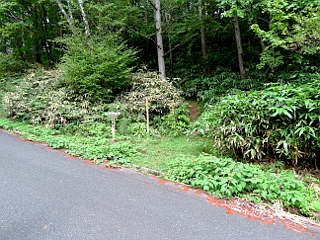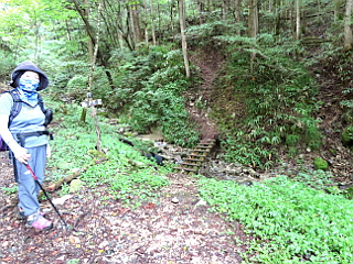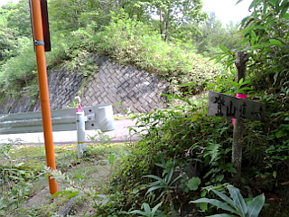 | 集合場所で観た二重の虹 | 高嶺山登山道入口 | 林道終点から木の橋を渡って山道に入る | |