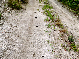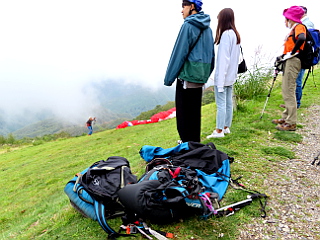 | 高嶺迂回路は最後が荒れていた | シカの足跡が続く | 飛ぶのを待つパラグライダー教室参加者 | |