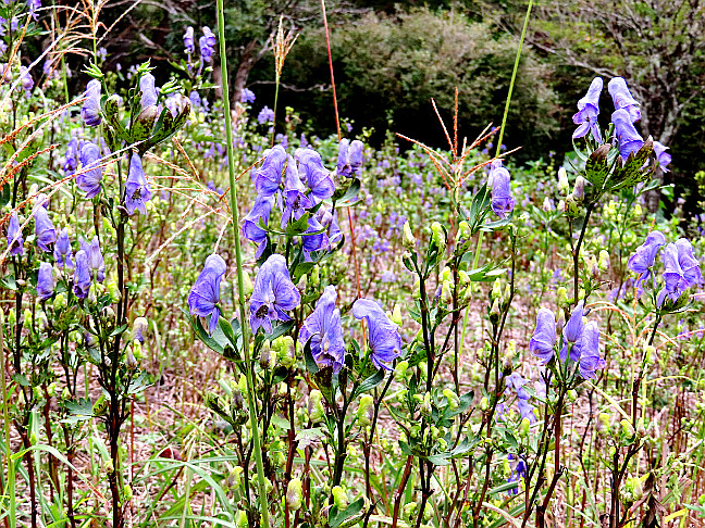 | 山行記 | ●この日は同級生を中心とした山登りだ。今回の山は、前年同じ時期に計画したものの、天候不良で中止になってしまった碁盤石山だ。しかし、今回行くに当たって、ネットの記事などで状況をチェックしていて気になったことがいくつかあった。 ●一つは、登山口として考えていた東納庫登山口までの林道が通行可能かどうかで、最近この登山口を利用した記事が少なく。直近の記事では通行止めになっていたということで、通行止めの地点から登山口まで歩いたということだった。 ●もう一つは、それらの記事に花が写っていないことだ。最初にこの山を訪れた27年前は、色々な秋の花が咲いていて驚いたのだが、訪れる度に花の種類も数も減ってきて、近年ではカワチブシぐらいしか観ることができなくなってしまっていた。 ●もう一つ心配していた、天狗の庭などの草刈りがされているかどうかで。草刈りがされていないと草で覆いつくされ、登山道が確認しづらい年もあった。それでも、最近の記事では、草刈りは綺麗にされているようなのでそれは問題なさそうだ。 ●当日、いろいろな不安を抱えながらも登山口へ向かう。東納庫登山口へ向かう林道の入口にはやはり通行止めと書かれたトラ柵が立てられていた。それでも、別のトラ柵には「碁盤石山登山口までは行けます」と書いてあったので、それを退かして先へ進んでみることにした。 ●舗装された道路は、このところ通る車が少なかったようで、路上には落枝や山側から落ちた石ころなどがそのままになっているので慎重に進んでいくと、東納庫登山口まで行くことができた。 ●登山口に一番近い駐車スペースは既に1台車が停まっていたので、そのすぐ上の駐車スペースに車を停めて歩き始める。登山口までの道沿いにはツリフネソウやクサアジサイ、アキノタムラソウなどが咲いていた。 ●東納庫登山口に着くと早速案内に従って手摺の付いたコンクリートの階段から登山道に入る。最初は沢沿いを緩やかに登る、途中二箇所の太鼓橋を渡り、さらに進み樹木が無く明るくなった場所を抜けると傾斜は徐々に急になり、その後胸突き坂と称ばれる、このコース一番の急坂を登るようになる。それを登り切ると沢山のベンチが現れ、その先で舗装された林道に出る。 ●林道から再び山道に入ると、すぐに右奥に送電線鉄塔が見えるようになり、左には七尋岩という大岩が現れる。道はそこから送電線鉄塔を巻くように右に折れ、しだいに急になってくる道を登っていくとカワチブシの咲いているのが見えてきた。 ●そこは既に天狗の庭の直下で、そのまま登っていくと天狗の庭に到着する。天狗の庭ではカワチブシが一面に咲き、半ば花を諦めていたので一同喜んだ。カワチブシはまだ蕾が多かったが、咲いている花は咲いたばかりで、傷んでいないので綺麗だった。 ●天狗の庭ではカワチブシの外にヨウシュヤマゴボウが群生しており、年々それが拡大しているのと、カワラナデシコやマツムシソウなどの外の秋の花が観られなかくなっていくのは気になるところだがこれもシカの食害なのだろうか。 ●天狗の庭での休憩は碁盤石山山頂へ行ってからにすることにして、まずは山頂を目指す。緩やかに登っていくとアセビのトンネル、富士見岩分岐を通っていくが、この辺りもカワチブシの群生がいい感じだ。 ●そこから一旦下り、水場への分岐から急坂を登っていくと、三角点のある碁盤石山山頂に着く。碁盤石山山頂はそれほど広くなく、樹木に囲まれていて展望は無い。 ●碁盤石山山頂からは来た道を戻り、往きにお預けにした富士見岩で奥三河の山々の展望を楽しみ、来た時よりも晴れ間が広がった天狗の庭で休憩をした後さらに来た道を戻った。 |