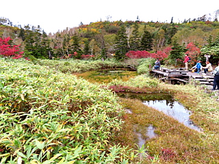 | 草紅葉 | 紅葉の山腹 | 草紅葉の木道と白馬岳 |