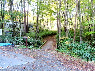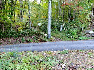| 治部坂高原駐車場を出発 | 別荘地内の遊歩道入口の案内 | 遊歩道入口 | |