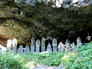 | 展望台から観る雄岩、雌岩と黒髪山 | 石仏に見守られながら登山口へ向かう | 登山口 |