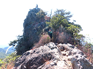 | クサリや梯子の急峻な道を登る | 有田ダム分岐 | 黒髪山へ最後の痩せて急峻な岩場を上る |