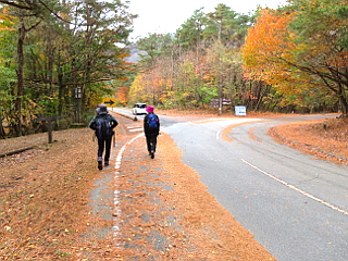 | 山行記 | ●紅葉前線も標高の高い山では既に終わり、次の楽しみは展望だ。ということで、富士山を始めとする周囲の山々や富士五湖、青木ヶ原樹海などの展望が期待できるこの山を選んだ。 ●いつもと同じく朝6時に豊川を出発して登山口の本栖湖キャンプ場駐車場を目指すが、天気予報は曇りということで、肝心な展望も期待できない。案の定、往きの新東名から観えるはずの富士山は、すっぽりと雲に包まれ観ることができなかった。 ●新東名の制限速度が上がったことで、山々への行程はさらに早くなり、今回も2時間半もかからずに登山口の本栖湖キャンプ場駐車場まで着くことができた。この時期になってもキャンプをしている人々のいるキャンプ場を後にして登山口へ向かう。 ●当初は湖畔登山口から最短コースで登ろうと思っていたのだが、「竜ヶ岳登山道入口」の案内を辿って進んでいくと、それとは違う石仏コースを進んでいることがわかった。それならと、往きはそれを歩くことに変更して進む。 ●登山口から最初は緩やかに登り始めるが、しだいに階段のある急坂になるので大変だが、それを何とか登り切ると、ベンチのある広場に出る。 ●広場からは往きのアプローチで観ることができなかった富士山を観ることができた。富士山は、山頂部に雲がかかっていて少々残念な感じだったが、雲を被っている間に降ったものと思われる新雪を山肌に纏い、いい感じだ。 ●道はすぐに小ピークを越え一旦少し下って再び登り始める。周囲はササ原なので、冷たい風が直接当たって寒いが、富士山や御坂山塊、青木ヶ原樹海、西湖などを観ることができ気分がいい。 ●緩やかな斜面を登り切ると東屋が見えてくるが、そこが見晴台と呼ばれる展望地で、数組の登山者が休憩をしていた。そこからは、富士山はもちろん今まで見えていた山々などが遮ることなく見ることができ、竜ヶ岳の山頂部も観ることができた。 ●見晴台から見上げる竜ヶ岳の山頂部へは急斜面が立ちはだかり心配になるが、登り始めると、大きくジグザグに切られた登山道が整備されていて、登山道自体は緩やかだった。その分距離は長く、いつになったら着くのか心配になる程だ。 ●斜面の傾斜が緩くなってくると道もまっすぐになり、そろそろピークかと思うが、そこからも長くて戸惑う。それでもようやく湖畔登山道からの道と合流すると、ようやく山頂が見えてくる。 ●分岐から山頂へは緩やかな道が続き、やがて多くの登山者が休憩をしている広い竜ヶ岳山頂に到着する。山頂は冷たい風が吹くので寒く、途中で脱いだ服を着こむがまだ寒いので、風が遮られるササの影に陣取って休憩をした。 ●次々と到着する登山者も、寒いので次々と入れ替わる中、こちらも、近くにいた登山者に記念写真のシャッターを押していただいた後下山にかかる。下山は先程の分岐から湖畔登山口方面へ下ることにした。 ●湖畔登山口への道はひたすらの下りで、急な箇所があるうえに道が湿っていて滑りやすいので要注意だ。それでも葉を落とした木々の間から観える本栖湖などの展望や葉を残している紅葉の樹々がいい感じで、ついついよそ見をしてしまう。 ●ひたすら続く急な斜面をひたすら下っていくと、ようやくキャンプ場が見えてきて、やがて湖畔登山口に下り立つ。後は、紅葉に彩られた舗装道を歩いて、車を停めた本栖湖キャンプ場駐車場へ戻った。 |