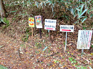 | 湖畔登山口は右だった | 石仏コース登山口 | 休憩所から観る本栖湖 |