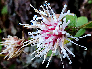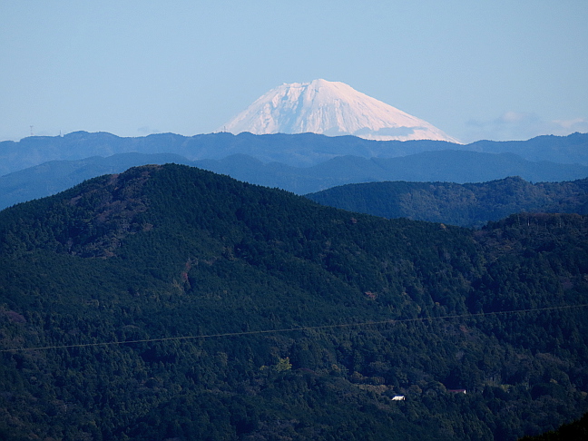| 山行記 | ●この日は今季一番の最低気温を記録したのだが、晩秋の花を探しにここを訪れることにした。このところ冷え込みが激しく、暑かった状態から一気に真冬の気候になった感じだ。それでも今年は、秋の花の開花が遅かったので、まだ見られるはずだ。 ●五葉湖の駐車場は、平日にもかかわらず早朝から数台の車が止まっていたが、下のPAの工事関係者の車だろうか。とにかく車を停めると五葉湖堰堤を歩き始める。この日の天気は最高で、雲一つない青空が広がりいい感じだ。 ●道沿いのハナゾノツクバネウツギなどは既に無く、それらに代わってビワの花が見られるようになってきた。野鳥の森入口から山道に入り、レンゲツツジの小道から作業道へ抜ける。 ●作業道でもすっかり花は無くなっていて、フユノハナワラビが観られるようになってきた。送電線鉄塔のある広場から自然観察路を歩いていくと、ヤマラッキョウがよく咲いていた。 ●赤い実の小道を見送り、いつもの急登を登っていくと五葉山山頂に着く。送電線鉄塔の周囲の木々が刈り払われ、明るくなった山頂では、平日なので、すぐ近くの採石場の重機の音が響いていた。 ●五葉山からは市境稜線を歩いて平尾山を目指すが、この天気のいいうちに五葉城址で富士山を見ようと先に寄っていくことにした。思ったとおり、このところ降った雪で白くなった富士山を見ることができた。 ●その外にもいろいろな花が咲いていたが、それは後ということにして、平尾山へ向かう。最初の急坂を登り切ると高城砦跡に着く。周辺では、なかなか見ることができないキッコウハグマの花を見ることができた。 ●高城砦跡からさらにアップダウンしながら徐々に登っていくと、平尾山山頂に着く。平尾山山頂は樹林に囲まれ展望がないのでそこそこにして県境稜線の急坂を下る。 ●少し進むと伐採地に出て、大きく展望が開ける。この日は天気がいいので富士山や南アルプス、浜名湖や浜松方面などの絶景が得られた。悪かった足下は、少し刈られたのか草の勢力が弱まったのか、以前と比べれば歩きやすくなっていたが油断は禁物だ。 ●送電線鉄塔に着くと、いつもどおり新城方面へ送電線鉄塔監視路を下る。急坂を下るとすぐに作業道に出るが、ロープの張られた最後の部分は相変わらず下りにくい状態のままだった。 ●作業道の伸びた草も、寒さが増す中、その勢力を弱めていたが、歩き難いことに変わりはない。花も、センブリが咲き始めていた外はこれといったものは観られず、そのまま林道出合まで進む。 ●林道に出るとそれを歩くが、ヤクシソウやセンブリ、リュウノウギク、コウヤボウキなどの晩秋の花がいい感じだった。五葉山、平尾山方面への分岐を過ぎるとすぐに五葉城址への分岐に着く。 ●五葉城址では、この時間になってもいい青空が広がり、富士山や南アルプス、三河や東三河の山々などの展望が見事だ。花も、リンドウやマツムシソウ、キクの仲間などがよく咲いており、平日なのだが訪れる登山者が絶えない。 ●五葉城址で展望と花を楽しんだ後はいつものように林道を歩いて下る。道沿いでは、リュウノウギクやスズカアザミ、ヤクシソウなどが咲き、植林の木が多い中だが、広葉樹の紅葉も始まっていた。 |