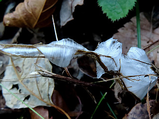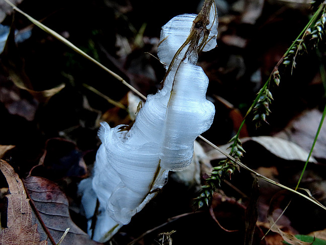 | 作業道沿いのシモバシラの霜柱 | ||