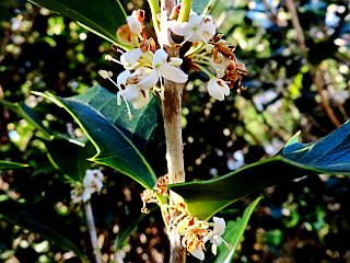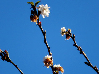 | 雨生山山頂に咲くヒイラギ | 農道沿いのサクラはまだ咲いている | 農道沿いに咲くスイセン |