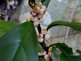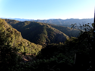| 山行記 | ●遠州一帯の富士山が見えそうな山も一通り登った感じだなのだが、この山の存在はつい最近知ったばかりで、富士山が見えるかどうかもはっきりしていないが、光明山遺跡からの展望は素晴らしいということなので、今回登ってみることにした。 ●起点は道の駅いっぷく処横川ということで、豊川からは近いし駐車場の心配も無い。豊川を朝6時に出たが、1時間程で道の駅いっぷく処横川に着くことができた。以前は奥深い印象があったこの辺りも、新東名の開通で随分近くなったものだ。 ●この日は冬型の気圧配置になるという予報で、道の駅は冷たい風が吹いていて寒いので、少し多めに着て出発した。道の駅から国道362号線を横断し集落の中の舗装道を進んでいく。 ●すぐに集落が途切れ「光明山登口」の案内が現れるので、それに従って山道に踏み入る。植林の中の道はしだいに傾斜を増し、九十九折の急坂に代わる。 ●道には「〇丁目」と掘られた石柱が立てられているが、それが全部で何丁目まで続くのか、それが光明山遺跡までなのか、光明山山頂まで続くのかもわからないので、初めて訪れた者にとってはあまり参考にならない。 ●九十九折れの急登を登り切ると尾根筋に出て、その傾斜も緩み、しばらくは緩やかなアップダウンをしながら進む。途中、東に展望の開ける場所があったが、その中に僅かに富士山を確認することができたので、一気にテンションが上がった。 ●再び急登が始まり、それを登り切った送電線鉄塔の建つ場所からは、先程よりも大きな雪を被った富士山を観ることができた。その手前からは、光明山遺跡の直下に建つ送電線鉄塔も見ることができた。 ●送電線鉄塔からは、尾根に沿って右に回り込むように進んでいくと、立派な石垣が積まれた光明山遺跡着く。下の段からでも浜松市街や遠州灘などの大展望が広がるが、傷みが激しく心許ない石段を上がり、上に行くにしたがってさらに展望は開ける。 ●光明山遺跡は冷たい風が吹いていて寒いのだが、我慢して展望を楽しんだ後、再び下段まで戻り、光明山山頂へ向かうが、案内板には光明山山頂が書かれておらず、頼みのGPSも電池切れしてしまったので、用意した地図を参考に方向を決めて進んだ。 ●結局、光明山遺跡の手前の道を緩やかに進んでいくと舗装道に出たので、なんとか現在地を確認できた。その先の案内板では、ようやく光明山山頂の記載があったのでそれに従って、光明山山頂への取り付き点を捜した。 ●何箇所かある光明山山頂への取り付き点の一つから取り付くことにしたのだが、取り付き点から始まる木の階段の損傷が激しくあまり歩かれていないようだ。それでも明瞭な道は続くので、その急坂を登っていくと、光明山山頂へ到着することができた。 ●光明山山頂は樹林に囲まれ展望は無いが、三角点や山頂標識はしっかりと付けられていた。光明山山頂で少し過ごした後、下山は右ルートをとろうと思い、奥の院と案内のある方向へ下り始めた。 ●途中奥の院との分岐があったので、そこを奥の院と反対方向に下りていくコースをとったのだが、それが間違いだったようで、結局来た道に戻ってしまった。ここまで来て戻るのも大変なので、予定変更で来た道を戻ることにした。 ●後で見直すと、右回りコースへ行くには、一旦奥の院の方へ進み、途中から右へ折れて下っていくのが正解だったようだ。ということで、往きに見た富士山とは光の当たり方が変わった富士山を楽しみながら車を置いた道の駅いっぷく処横川へ戻った。 |