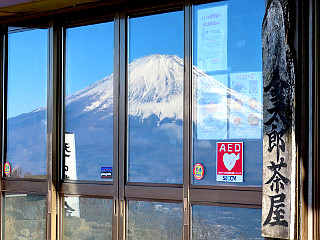 | 金時山山頂からの絶品の富士山の展望 | ガラスに映る富士山がポスターのよう | |