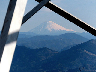 | 372.9m三角点 | 富士見岩山頂 | 山頂の送電線鉄塔越しに見る富士山 |
