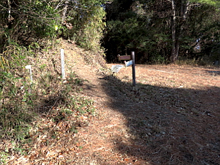 | 山行記 | ●土日は雨で山へ行くことができなかったので、この日は是非とも山へ行きたいと思っていた。この日の天気予報は晴れなのだが、寒気が南下してくるので風が強く寒い日になるということだ。 ●登山口のおちばの里親水公園駐車場には既に1台車が停まっていたが人影は無かった。公園内ではロウバイが咲いており、周囲ではウメの花も咲いていて冬真っただ中だが春の気配を感じることができる。 ●予報どおり風が強くて寒いので、少し着込んで出発する。「右 豊川道 左 今川源流」の道標を右へ進むと、みかん畑が終わる辺りで舗装は無くなり、路面に石の多い歩き難い道に代わるが、ここも往時は街道として石畳が整備されていたのだろうか。 ●少し進むと、豊川道と不動滝との分岐になるので、これまでは豊川道へ進んだのだが、この日は不動滝の方へ行ってみることにした。しばらく緩やかな道が続くが、しだいに道は急になり、不動滝に到着する。 ●不動滝は、一応滝なのだがこのところ雨が降っていないためか水量も少なく、倒木が邪魔して良く観ることができなかった。滝の横の急坂を登ると滝の上部に出るが、そこには祠が祀ってあった。 ●さらに進むと、突然イノシシの死骸が現れたので驚いた。イノシシは処理されていないので駆除されたものではなさそうで、以前納古山で知った豚コレラなどの感染症で死んだとすると大変なことだと思いながら先へ進んだ。 ●道はすぐに未舗装林道に出るので、それを10分程歩いていくと、先程の分岐から上ってくる豊川道と合流する。後は道標に従って大知波峠方面へ続く緩やかな山腹道を登っていく、途中「椿の群落」の看板があるが、花はまだこれからのようだ。 ●その後「炭焼き釜跡」や「鍋割の水」などの看板を見ながら松の落ち葉でふかふかな道を登っていくと、行く手が明るくなってきて、やがて大知波峠の廃寺跡に着く。廃寺跡からは遠州灘や浜名湖方面を観ることができた。 ●大知波峠からは県境稜線を歩いて富士見岩方面へ進む。途中372.9m三角点を見て緩やかなアップダウンを繰り返しながら進む。この辺りでも、ヤブツバキの花が所々落ちているのだが、咲いている花は観ることができなかった。 ●やがて、目の前に大きな岩と送電線鉄塔が現れるが、そこが富士見岩山頂だ。山頂に着き、早速富士山を捜すと、送電線鉄塔の向こうにいい感じで雪を被った端正な姿の富士山を観ることができた。 ●富士見岩を回り込むように進むと、真っ白な南アルプスの山並みも観ることができ、三ツ瀬明神山や茶臼山、宇連山などの奥三河の山々や本宮山なども観ることができた。 ●富士見岩山頂も風が強くて寒かったが、富士見岩で風が遮られるところでは日が当たっていてむしろ暖かく、そこでしばらく休憩することにした。休憩後、再び富士山や南アルプスを観てから下山を開始することにした。 ●下山はいつものように、おちばの里親水公園へ続く尾根を下る。山頂直下では、再び富士山や南アルプスなどを楽しむことができるが、ロープの張られた急坂を下ると樹林帯に入り展望は無くなってしまう。 ●尾根上には送電線鉄塔が何本もあり、それらを2本過ぎると未舗装林道に出るが、それは先程の未舗装林道へ続く道だ。その未舗装林道を少し歩くとおちばの里親水公園への下降点が現れるので、それに従って再び山道を下り始める。 ●下る道は直線的で急な箇所もある。途中送電線鉄塔をもう1本見てさらに下っていくと、みかん畑の石垣が見えてきて、以降みかん畑の中を下ればおちばの里親水公園へ向かう舗装道に出る。 ●振り返れば、先程通過してきた送電線鉄塔が立つ尾根道の全容を見ることができる。舗装道出合からは車を置いたおちばの里親水公園は見えている。やはり平日なので駐車場の車は若干増えていたが、人気は無かった。 |