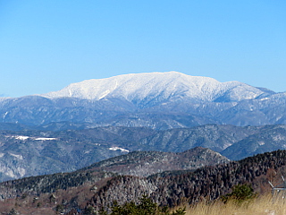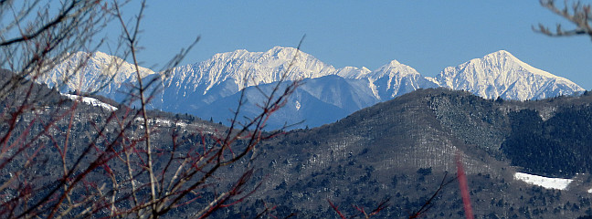 | 山行記 | ●花が観られなくなる冬期間の楽しみは、展望と霧氷などの氷点下の造形だ。ここ二三日は今シーズン最強で最後の寒波が来るということなので、それらを期待して天狗棚を訪れることにした。 ●ところが、事前の予報では豊川でも零下になるという予報だったのだが、車の外気温計は2度と高めの気温を示し、新城を抜けて設楽町に入っても氷点下にはならない。周囲の山を見ても残雪はあるものの、霧氷ができている感じではない。 ●津具から茶臼山高原道路に入ると、ようやく氷点下になったが、このぐらいの気温では霧氷は絶望的だ。それでも、朝からすっきりと晴れていたので、展望を期待して面ノ木第一園地の駐車場を目指した。 ●駐車場に着くと、気温表示は−6度だが霧氷はありそうも無い。それよりも風が強く、車から出るのも躊躇するぐらい寒い。それでも意を決して、霧氷が無いならと展望を期待して井山から登ることにして支度を始めた。 ●ところが、ここに来て妻のスノーシューが靴を固定する部品のトラブルで使い物にならないことが判明した。それでも積雪はそれ程でも無さそうなので、こちらもお付き合いでスノーシュー無しで行くことにした。 ●思ったとおり道の積雪は数センチ程度で、舗装された路面が露出している所もあり、これならスノーシューは必要無さそうだ。緩やかに登っていくと、木々が無くなるので強風が当たり始め、樹々に積もった雪が強風で飛ばされ、雪が降っているようだ。 ●何機もある発電用の風車がフル回転で、その音が恐怖を感じる程凄まじい。それでも青空が素晴らしく、雪化粧をした恵那山や御岳、南アルプスの峰々などががくっきりと観える。一方天狗棚は僅かに山頂部で霧氷らしい樹々が観られるだけだった。 ●一番上の風車から上は、このところ車両などの出入りが無かったようで、轍も足跡も無く、雪も若干深くなる。しかし、井山山頂付近は強風で雪が飛ばされるのか、積もった雪の中から地肌が見えていた。 ●井山山頂では強風が吹いていたのだが、不思議と寒さを感じることは無く、ゆっくりと360度の大展望を楽しむことができた。しばらく山頂で過ごした後、来た道を戻り面ノ木第一園地駐車場まで戻った。 ●面ノ木第一園地駐車場へ戻ると、妻が天狗棚へは行かず車で待っているというので、今度はスノーシューを履いて天狗棚を目指すことにした。駐車場にはほとんど無かった雪も面ノ木第一園地からはある程度積もっていていい感じだ。 ●積もった雪を踏みしめ緩やかに登っていくと、天狗棚と天狗棚展望台との分岐に出るので、ここは天狗棚方面へ直進する。傾斜はしだいにきつくなり、それを登り切ると稜線に出るので、後は山頂へ向けての最後の坂を緩やかに登っていく。 ●天狗棚山頂一帯は冬枯れて明るくて気持がいいが、強風が吹いていて、樹々に積もった雪が激しく降ってきて大変だ。よく観ると樹々の枝には霧氷が観られたが、この日にできたものではなさそうだった。 ●天狗棚山頂からは天狗棚展望台へも寄っていくことにした。程好く積雪のある稜線を歩いていくが天狗棚展望台の手前の下りが急なので、スノーシュー履いて通過するのが大変だった。途中面ノ木第一園地への下降点を過ぎると天狗棚展望台に着く。 ●天狗棚展望台からは樹木が些か邪魔なのだが、少しだけ観ることができる富士山を始め南アルプスの峰々や恵那山、大川入山、蛇峠山などが、茶臼山、碁盤石山、三ツ瀬明神山などの奥三河の山々も観ることができた。 ●天狗棚展望台でも展望を楽しんだ後、先程の面ノ木第一園地への下降点から山腹道を下る。途中狭くて不安定な箇所もあったが慎重に通過し、先程の天狗棚と天狗棚展望台との分岐からは登ってきた道を下り、面ノ木第一園地まで戻った。 |