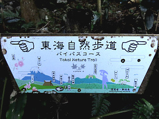 | 満観峰山頂から観る高草山 | 逆川コース下降点 | 東海自然歩道バイパスコースの標識 |