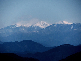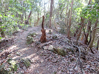 | 山行記 | ●春の花もぼつぼつ咲き始めたので、例年この時期に咲くマンサクを観るために長彦自然歩道へ行ってみることにした。通勤時間帯を避けて少し早めに豊川を出たので、周回コースの下山口となる嵩山駐車場には7時前に着くことができた。 ●この日は冬型がぶり返し、日は当たるのだが低温に加えて強風が吹いていてとても寒いので車を降りるのが厳しかったが、なんとか降りて、まだ朝日が当たり始めていない、人影の無い旧姫街道を進む。 ●舗装道から川沿いの道に入り、嵩山小学校の前からは豊川用水に沿って歩いていく。その後豊川用水を離れ舗装道を歩いていくと長彦自然歩道用の駐車場を経て長彦自然歩道の入口に着く。 ●長彦自然歩道入口には、石巻山方面への道が崩落のため通行止めであることを知らせる看板があるが、今回のコースとは関係が無いのでそのまま緩やかな道を登っていく。 ●道は樹林帯に入ると溝状の道になり、大き目の石が転がる上に落葉が堆積しているので歩き難い。道はしだいに急になり、尾根手前で「御用岩」への分岐があるのでそこへも寄っていく。 ●御用岩は展望の良い大岩だが、木が邪魔をしてすっきりとした展望は得られない。それでも、隣の石巻山や本宮山、三河湾方面などを観ることができた。 ●御用岩からは、すぐ上の送電線鉄塔横の道を進むと、本来の長彦自然歩道と合流するのだが、一帯の木が伐採されていていつもと違う感じだ。伐採地からは、今まで見えなかった本宮山や石巻山なども観ることができた。 ●ところが、この辺りで観るマンサクの花が見つからない。まだ早いか遅いかで観えないのだと思って捜してみるがそれらしい木が見つからない。この伐採で伐られてしまったとは思いたくはないが、もしそうだとすれば残念なことだ。 ●伐採された処から僅かに登れば大知波峠に着く。大知波峠は風の音は凄いがそれほど強くは無く、むしろ日が当たって暖かいぐらいだ。峠からは浜名湖方面を見渡すことができるが、水面がキラキラと光っていていい感じだ。 ●大知波峠からは県境稜線を歩いて富士見岩を目指す。小さなアップダウンをしながら427.2m三角点を過ぎてさらに進んでいくと富士見岩山頂に到着する。山頂からは南アルプスは観ることができたが富士山は雲に隠れて僅かに山肌しか観えなかった。 ●富士見岩山頂は風が強いので、富士見岩の陰で少し休憩をして先に進む。少し下り登り返すと送電線鉄塔のあるピークに着く。ピークの一角には427.2mの三角点がある。 ●そのピークからは少し下りが続き、それを下り終わったところが嵩山方面への下降点で、そのすぐ上には頭浅間社が祀られている。頭浅間社から少し平坦な道を進むと本坂峠に着く。 ●本坂峠からは坊ヶ峰を目指して急登を登り始める。遠目に見ても形のいい坊ヶ峰への登りはやはり急で、この日最大の登りだ。途中夫婦岩を過ぎると坊ヶ峰山頂まではあと一息だ。 ●坊ヶ峰山頂は樹林の中で薄暗く展望は無いが、立派な坊ヶ峰神社が鎮座し、その裏手に三角点が設置されている。坊ヶ峰からは一旦本坂峠まで戻り、そこから旧姫街道を下る。 ●旧姫街道は広い緩やかな道で昔の街道を思わせ、途中「弘法水」、「茶屋場跡」など当時の名残も残っている。そして浅間神社への道を分けるとコンクリートの道に代わり、そのすぐ先で舗装道に突き当たるので、後はそれを歩いていく。 ●舗装道は現在の本坂トンネルが完成する前に利用されていた旧道で、車が通行するには狭くカーブも多い。少し歩いていくと足浅間神社への急な石段が現れ、さらに進み本坂トンネル手前の国道を跨いだ後、回り込んで今度は国道を潜ると嵩山駐車場まで戻ることができる。 |