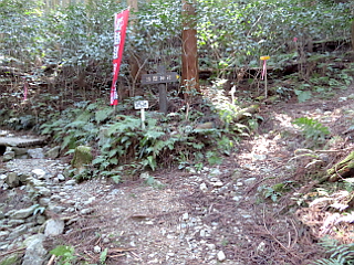 | 浅間社分岐 | 舗装道に突き当たる | 足浅間社へ続く急な石段 |