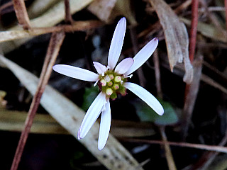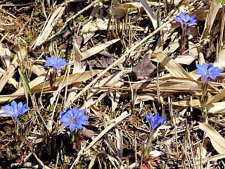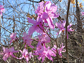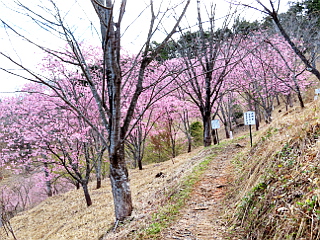 | 山行記 | ●このところ雨の日が続き、ようやく晴れるというこの日、シュンランの様子が見たくて比丘尼を訪れた。朝、雲が多かったがしだいに青空が広がってきて、いい陽気になってきた。 ●比丘尼駐車場では大きなシダレザクラが咲き始めており、歩き始めると、見頃を迎えたコヒカンザクラやヨウコウザクラなどが山肌を彩っていた。綺麗に草刈りがされた道沿いには草刈りで茎が伸びる前に咲いたショウジョウバカマが観られた。 ●また、小さいがゆえに草刈りを免れたフモトスミレやハルリンドウなどが咲いていたが、早朝なのでまだ開いておらず目立たないのは残念だ。それでも時間の経過により、この先の場所では開いているものが観られることだろう。 ●東屋から比丘尼城址を越えて進んでいくと、愛の鐘では植栽されたスイセンなどが満開だった。おすすめの小径分岐から金山方面へ進むと、前回咲き始めだったミツバツツジは既に終わりかけていた。 ●樹林帯に入り、林道を横断して急坂をジグザグに登っていくと金山山頂に着く。金山山頂で少し過ごした後県境稜線を進む。道沿いでは、ヤブツバキやアセビ、ヤマウグイスカグラ、クロモジ、ヤマザクラなどが咲いていた。 ●やがて裸地に入るが、期待したハルリンドウは思っていた程咲いておらず、その先の展望ピークの登りでもぽつぽつと咲いてる程度だった。一方、天気がいいので、展望ピークからの本宮山や吉祥山などの自慢の展望は素晴らしかった。 ●雨生山に着くが、富士山や南アルプスなどはその方向の雲が邪魔して観ることはできなかった。それでも、青空が広がり、いろいろな蝶が飛び交い、浜名湖や遠州灘方面への展望もいい感じだった。 ●雨生山から一旦展望ピークまで戻り、雨生山反射板経由で新城側の林道へ下る。その道沿いでは、ハルリンドウが、まだ蕾が多いものの咲いたものもあって楽しむことができた。 ●林道に出ると以降はしばらくそれを歩いて下るが、キブシは既に終盤を迎えており、ヤマザクラが咲き始めていた。また、足下ではタチツボスミレなどがよく咲き、春の花のシーズンの始まりをアピールしていた。 ●送電線鉄塔入口からおすすめの小径へ向かう道沿いの水溜りでは無数のオタマジャクシが泳いでいた。おすすめの小径では陽光桜が満開で、可愛らしいピンク色の花が青空を背景に一際映えていた。 ●おすすめの小径は二か所の裸地を経て西山口へ下るが、最後の下りは前日までの雨で濡れていて、これまで以上に慎重に下った。後は農道を歩いて車を停めた比丘尼駐車場へ戻ったが、平日にもかかわらず、サクラ目当ての人が多く、上も下もほぼ満車状態だった。 |