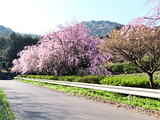 | 堰堤から観たドクターイエロー | サクラが山腹を彩る砥神山 | |