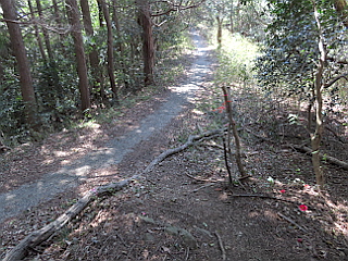 | 御堂山山頂から観る三河湾と砥神山 | 直接下るコースはコンクリートの道と合流 | 修復された昨年の大雨の崩落個所 |