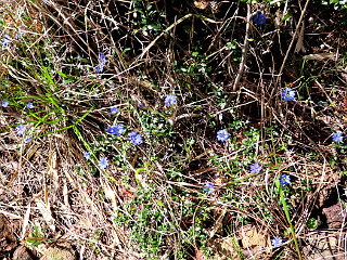 | ハルリンドウの絨毯が敷き詰められた春爛漫の比丘尼と県境稜線 | ||