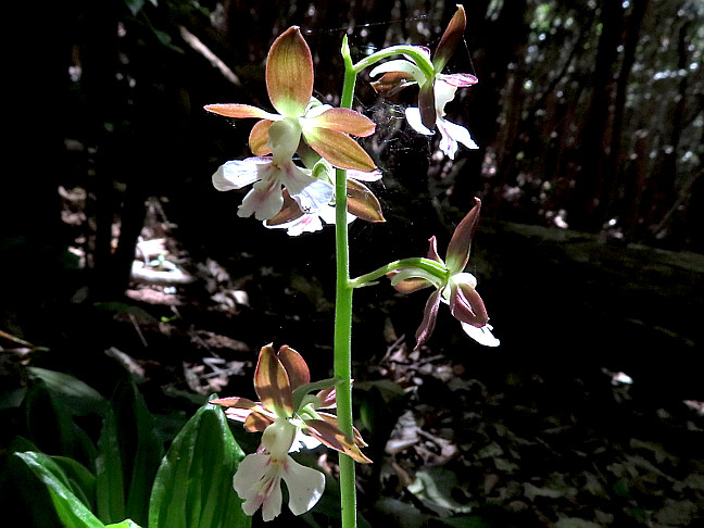 | 山行記 | ●ゴールデンウィーク後半の三日目、この日も天気が良さそうなので、特に花などの当ては無いが、とりあえず比丘尼へ行ってみることにした。この日は高温傾向だった前日によりもさらに温度が上昇するということだ。 ●比丘尼駐車場には既に他県ナンバーの車が一台停まっていたが、こちらも戻ったときに日陰になっていそうな場所に車を停めると、早速、放射冷却でできた朝露がまだ残り、葉を付けたサクラで少し暗くなった道を歩き始める。 ●道沿いではまず鮮やかなピンク色のシランが目に入る。以降、シソバタツナミやシライトソウ、ソクシンランなどが次々と現れいい感じだ。ハルリンドウも、既に種子を付けたものが多くなっていたが、まだ開いていないものも多い。 ●東屋で青空の下の本宮山や吉祥山などの眺めを楽しんだ後、さらに、比丘尼城址、愛の鐘を経て、おすすめの小径から外れて金山方面へ向かうが、前回と比べても山肌の緑はさらに濃くなってきている感じだ。 ●樹林帯に入るとシソバタツナミを捜すが、まだ葉が出始めたところだった。林道を横断して金山山頂へ続く急斜面をジグザグに登っていく。金山山頂のキンランは、ようやく花を付けていたが、まだ開いた様子は無かった。 ●金山山頂からは、新緑も色濃くなりさらに薄暗くなった県境稜線を雨生山方面へ進む。裸地に出ると、ハルリンドウがまだまだ咲いているが、大きな株が少ない上に花の大きさも小さいものが多く最盛期は既に過ぎた感じだった。 ●新城方面への下降点が近付くとツクバネウツギがよく咲いていて、展望ピークではカマツカやズミが満開を迎えていた。展望はというと、昨日と同じく遠くは霞んでいて、南アルプスや恵那山などは薄っすらとしか観ることができなかった。 ●展望ピークでから雨生山へ進む。雨生山山頂に着き、まず富士山が見えるのか確認してみると、かなり霞んでいるものの、かろうじて確認することができた。雨生山山頂で飛び交ういろいろな蝶を観ながら少し休憩し、展望ピークまで一旦戻る。 ●展望ピークからは雨生山反射板へ展望を楽しみながら下り、新城側の林道へ下るが、道には足の踏み場も無い程小さなハルリンドウが咲いていた。その後林道をしばらく歩くが、二週間前とは違ったいろいろな花が咲いていて楽しい。 ●送電線鉄塔巡視路入口からおすすめの小径へ、草刈りがされていない道を進むが、途中の水溜りの無数にいたオタマジャクシは無事カエルになったのか、一匹も観ることができなかった。 ●おすすめの小径に合流すると西登山口へ下る。西登山口付近ではニョイスミレが群生していた。後は農道を歩いて朝、車を置いた比丘尼駐車場まで戻る。途中の精米工場ではヒトツバタゴが満開になっていた。 |