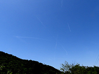 | 雨生山山頂から観ることができた富士山 | 飛行機雲がまるで落書きの様 | おすすめの小径西登山口 | ||
