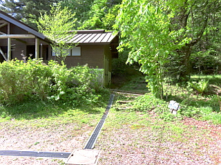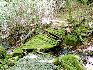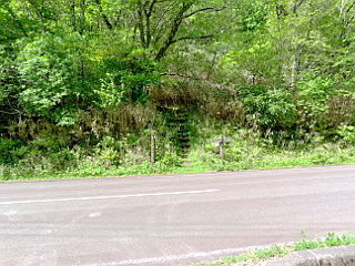 | 舗装道から観る新緑の茶臼山山頂部 | 矢作川源流 | 傷んだ木の橋 |