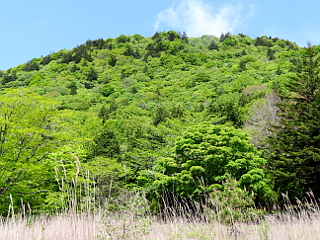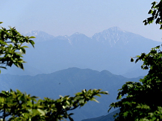 | 正月の芝桜まつり開催中の萩太郎山を望む新緑が眩しい愛知県最高峰 | ||