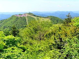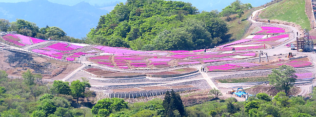 | 茶臼山山頂 | 茶臼山山頂から見る芝桜まつり開催中の萩太郎山の花壇 | |