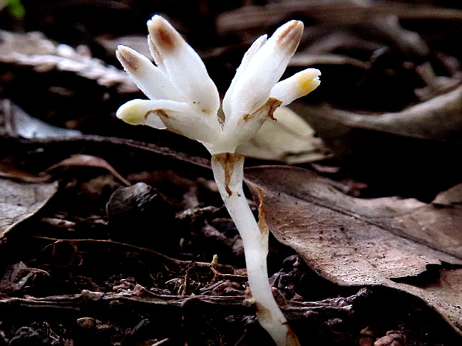 | 山行記 | ●このところ、目立たない地味な希少植物を観に行くことが多かったが、今回もヒナノシャクジョウという、薄暗い樹林帯の中に生える葉緑素を持たない腐生植物を観に、葦毛湿原を訪れることにした。 ●平日の早朝とはいえ、既に数台の車が停まる葦毛湿原駐車場に車を停め歩き始める。この地方も前日に梅雨明けしたということだが、厚い雲に覆われ、樹林帯の中はまだ薄暗く、これといった花も見つからない。 ●葦毛湿原入口の広場に着くと、まずは葦毛湿原の木道を歩いてみる。木としてはノリウツギが咲き始めており、湿原にはミミカキグサの仲間やトウカイモウセンゴケ、ミカヅキグサなどを観ることができ、ホオジロやウグイスなどの囀りも賑やかだった。 ●いつもよりも多くの時間葦毛湿原を歩いた後、湿原を後にして山道に入る。岩崎自然歩道直登コースと合流し、一息峠を経て弓張山地主稜線を進むが、この時期これといった花は観られなかった。 ●雲谷山と呼ぶ人もいるNHK二川テレビ中継局に着くと、ロープの中でアキノタムラソウやニンジンボクなどが咲いていた。HK二川テレビ中継局から少し下り、軽く上り返すと座談山山頂で、NHK二川テレビ中継局とは双耳峰のようだ。 ●この日も座談山山頂からは富士山や南アルプスなどを観ることはできなかったが、遠州灘や頻繁に行き来する新幹線を観ることができた。座談山山頂のベンチで一休みした後、急な坂を下ると船形山のコルに着く。 ●コルから少し登ると呆気なく船形山山頂に到着する。船形山山頂はさらに草木が伸び薄暗くなってしまっている。 ●船形山山頂から徐々に下っていくと普門寺峠に着く。普門寺峠からは岩の多い道に代わり、望寺岩、送電線鉄塔を経て手洗への分岐に着くが、そこから神石山への急な登りが始まる。 ●途中から樹脂製の階段が現れ、最後は岩の露出した箇所を登れば一等三角点のある神石山山頂だ。この日の神石山山頂は、平日にもかかわらず多くの登山者が休憩していた。山頂にはクワガタが集まる木があるらしく、多くのクワガタを見ることができた。 ●神石山山頂で少し過ごした後下山を始める。下山は一旦手洗分岐まで戻り、そこから神石山自然歩道で手洗へ下ることにした。このところの雨で湿った道は滑りやすく、慎重に下る。 ●途中林道を横切ると道は雨水が流れた後の荒れた道になる。それをなんとか下り切ると左手奥に神社が見えてきて、程無く手洗の集落に着く。すぐに普門寺峠から来る普門寺自然歩道と合流し、後はひたすら舗装道を歩いて葦毛湿原駐車場まで戻った。 |