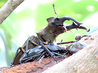| ミヤマクワガタのカップル | モンシロチョウのカップル | 水田のジャンボタミシとオタマジャクシ |